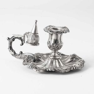 Bugia in argento fuso, sbalzato e cesellato. XIX-XX secolo