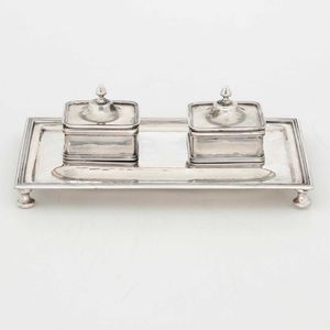 Vassoio in argento con smoccolatoio, apparentemente privo di punzonatura. XIX se [..]