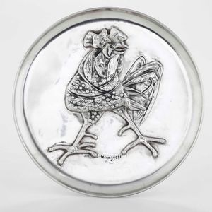 Gallo in argento 925 fuso. Firmato Minguzzi. Argenteria artistica italiana del XX [..]