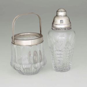 Insieme di portaghiaccio e sheker in vetro molato e argento, Italia XX secolo