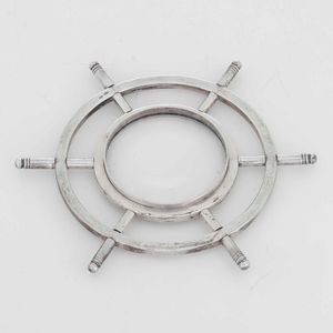 Lente da tavolo in argento a forma di timone. Argenteria artistica milanese del [..]