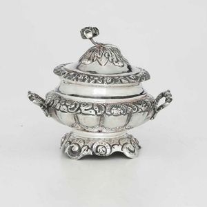 Zuccheriera in argento fuso, sbalzato e cesellato in stile settecentesco genovese. [..]
