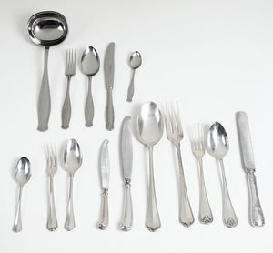 Due servizi di posate in argento incompleti. Uno argentiere Clementi Bologna e bollo [..]