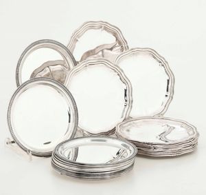 24 piatti in argento (12 di una tipologia e 12 di altra tipologia). Argenteria italiana [..]
