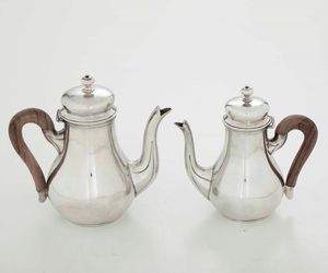 Caffettiera e teiera. Argento fuso e sagomato. Argenteria italiana del XX secolo. [..]