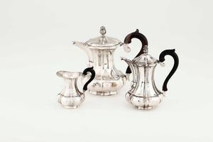 Caffettiera, teiera e lattiera in argento. Argenteria milanese del XX secolo. Due [..]