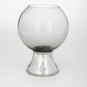 Vaso in vetro poggiante su base in argento, Italia XX secolo