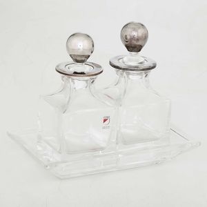 Oliera in vetro molato con finiture in argento sterling. Argenteria fiorentina del [..]