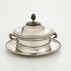 Zuppiera con vassoio in argento. Argenteria italiana della prima metà del XX secolo. [..]
