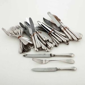 Lotto composto da 4 posate da portata, 12 forchette, 12 coltelli, 11 coltelli da [..]