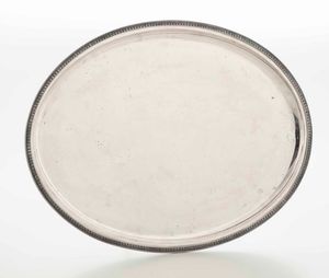 Vassoio ovale. Argento fuso e sagomato. Italia, XX secolo. Argentiere Zaramella, [..]