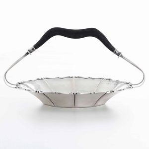 Cestino. Argento fuso e sagomato, manico ad arco in legno ebanizzato. Argenteria [..]