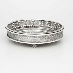Alzata circolare con bordo traforato in argento. Argenteria siciliana del XX secolo. [..]