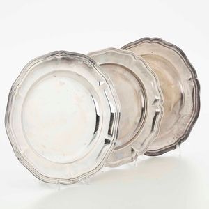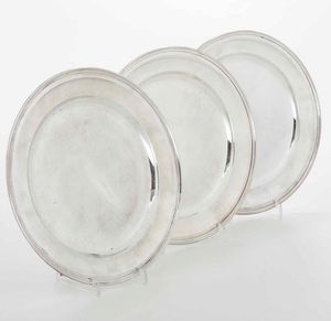 Tre piatti. Argento fuso e sagomato. Italia XX secolo. Argentiere Ricci & C., Alessandria [..]