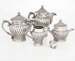 Servizio da tè e caffè in argento fuso, sbalzato e cesellato. Argenteria milanese [..]