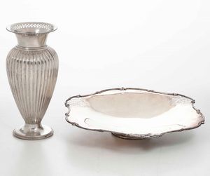 Lotto di un centrotavola e un vaso in argento. Argenteria italiana del XX secolo, [..]
