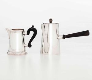 Piccola caffettiera e lattiera in argento. Italia XX secolo. Lattiera argentiere [..]