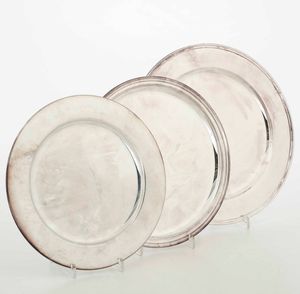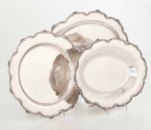 Lotto di tre piatti in argento. Varie manifatture italiane del XX secolo