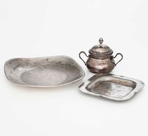 Tre oggetti in argento. Italia XX secolo. Portabiglietti e ciotola Argentiere Cusi [..]