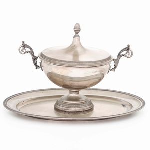 Zuppiera con vassoio in argento. Argenteria veneta del XX secolo. Argentiere Zaramella, [..]