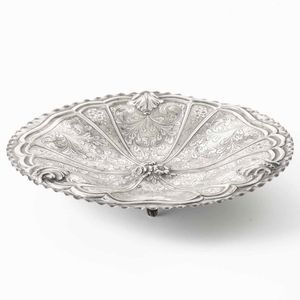 Alzata in argento fuso, sbalzato e cesellato. Argenteria italiana del XX secolo