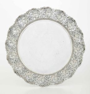 Piatto in argento. Argenteria milanese del XX secolo. Argentiere Miracoli