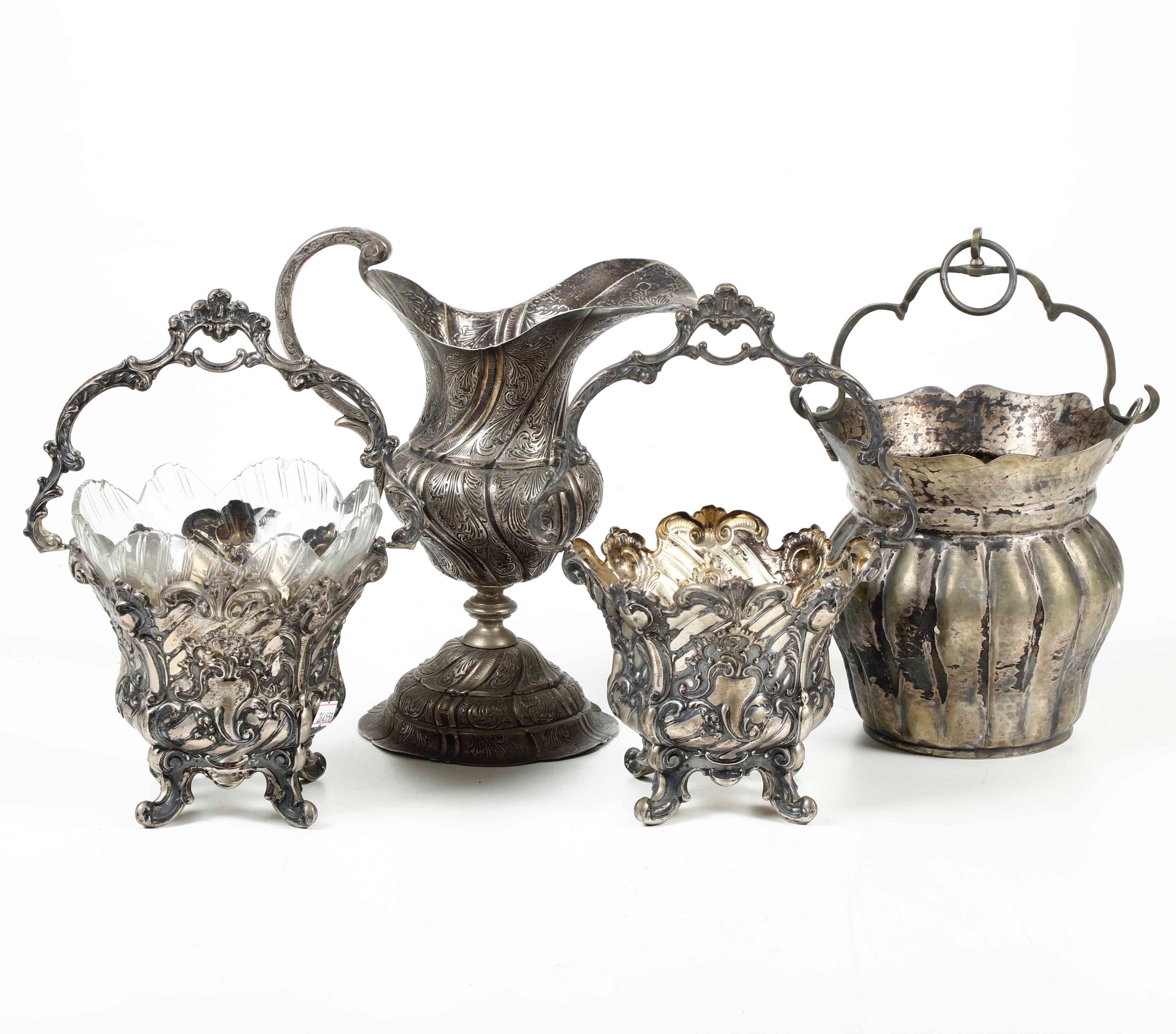 Brocca, due cestini e due secchielli in argento. Varie manifatture ed epoche; un [..]