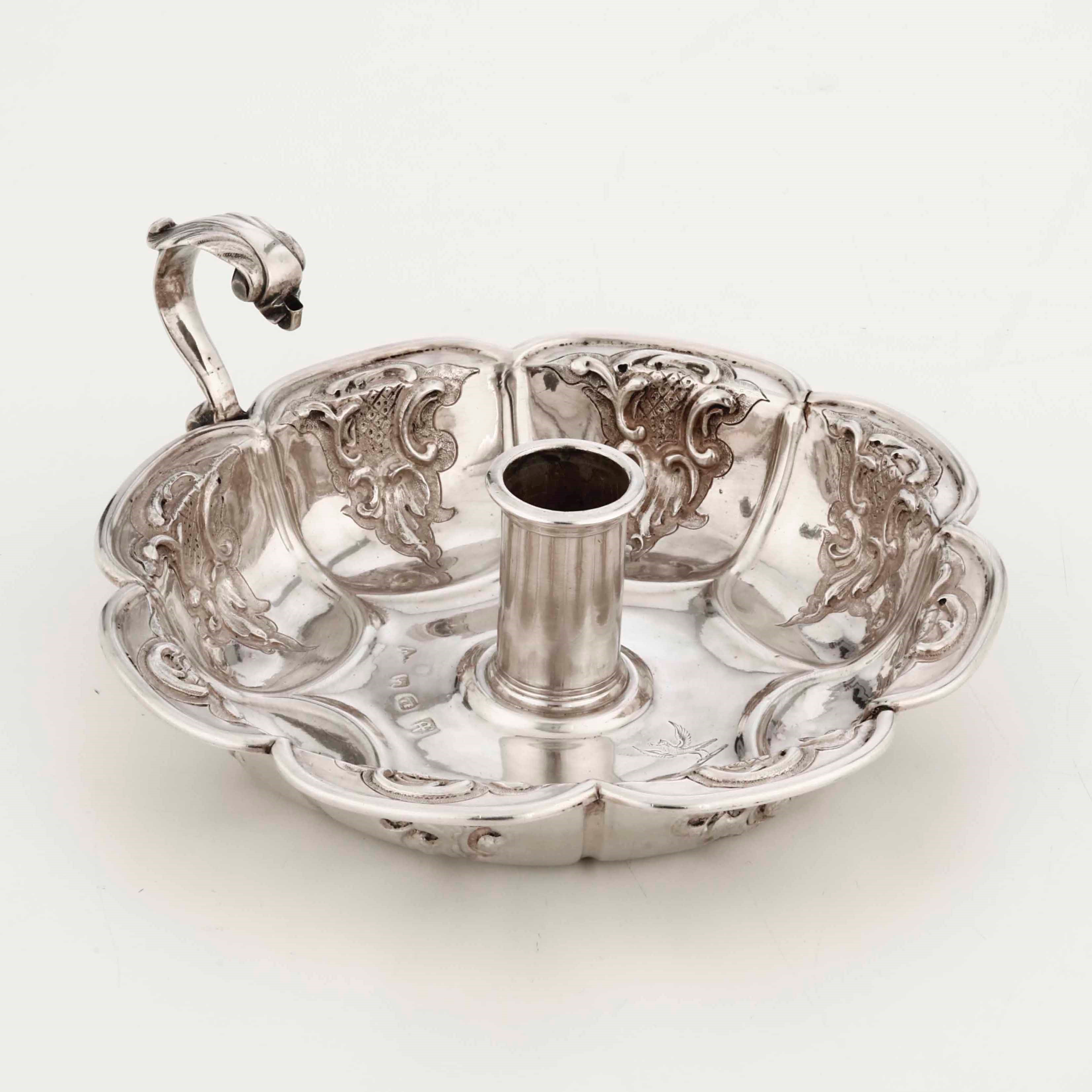 Bugia in argento fuso e sbalzato. Inghilterra, città di Londra, marchi consunti [..]