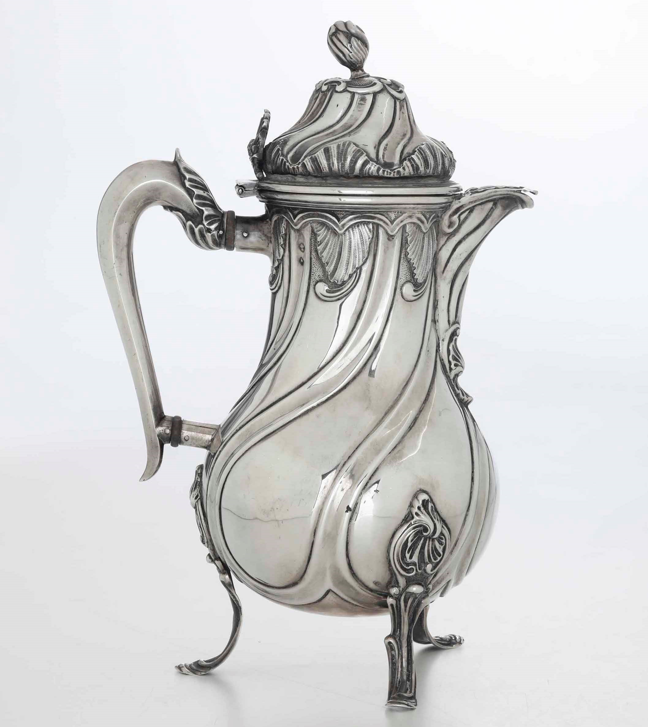 Caffettiera argento fuso, sbalzato e cesellato. Probabilmente Torino XIX-XX seco [..]