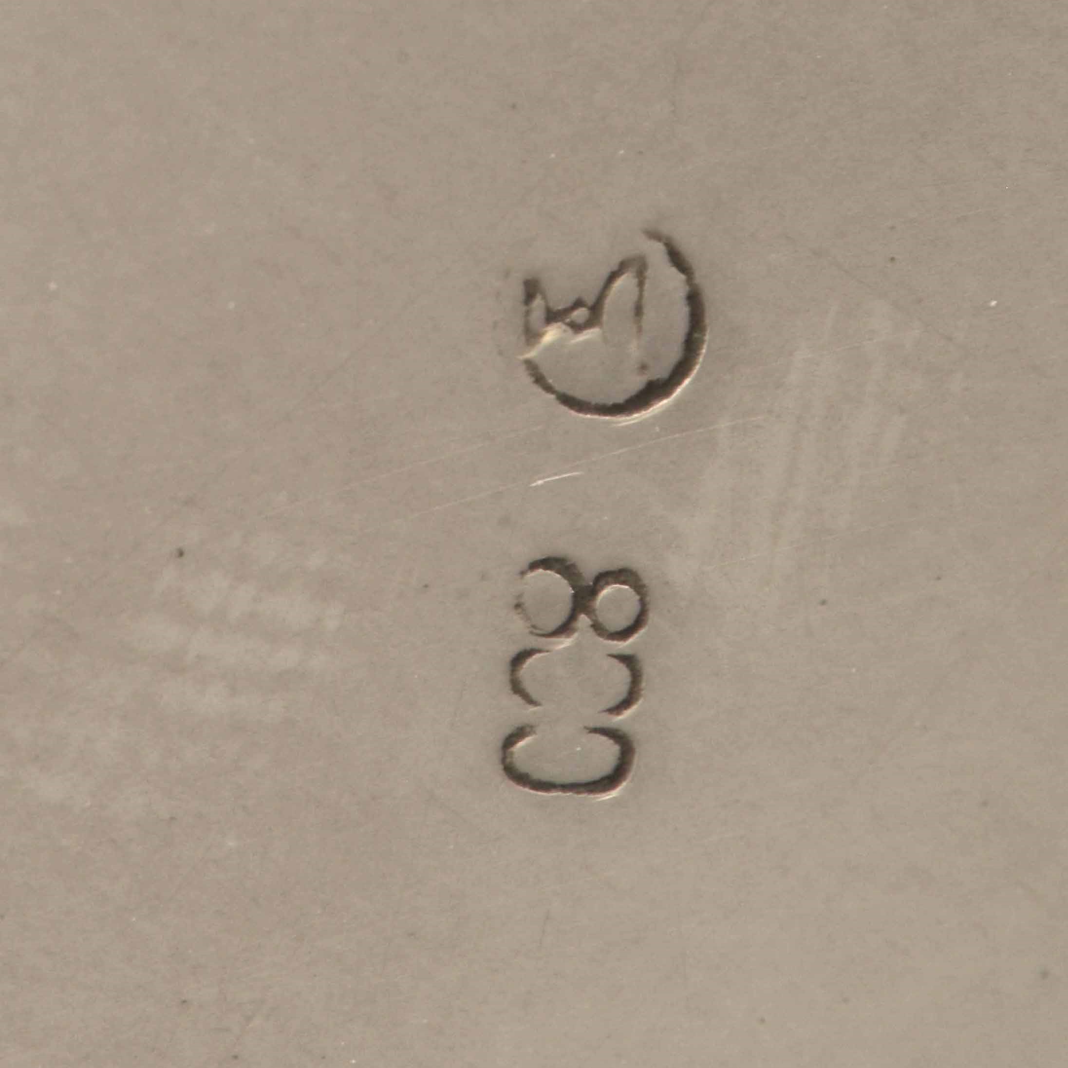 Cestino. Argento fuso e sagomato, manico ad arco in legno ebanizzato. Argenteria [..]