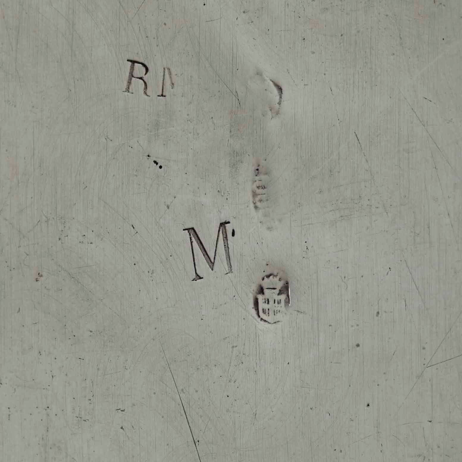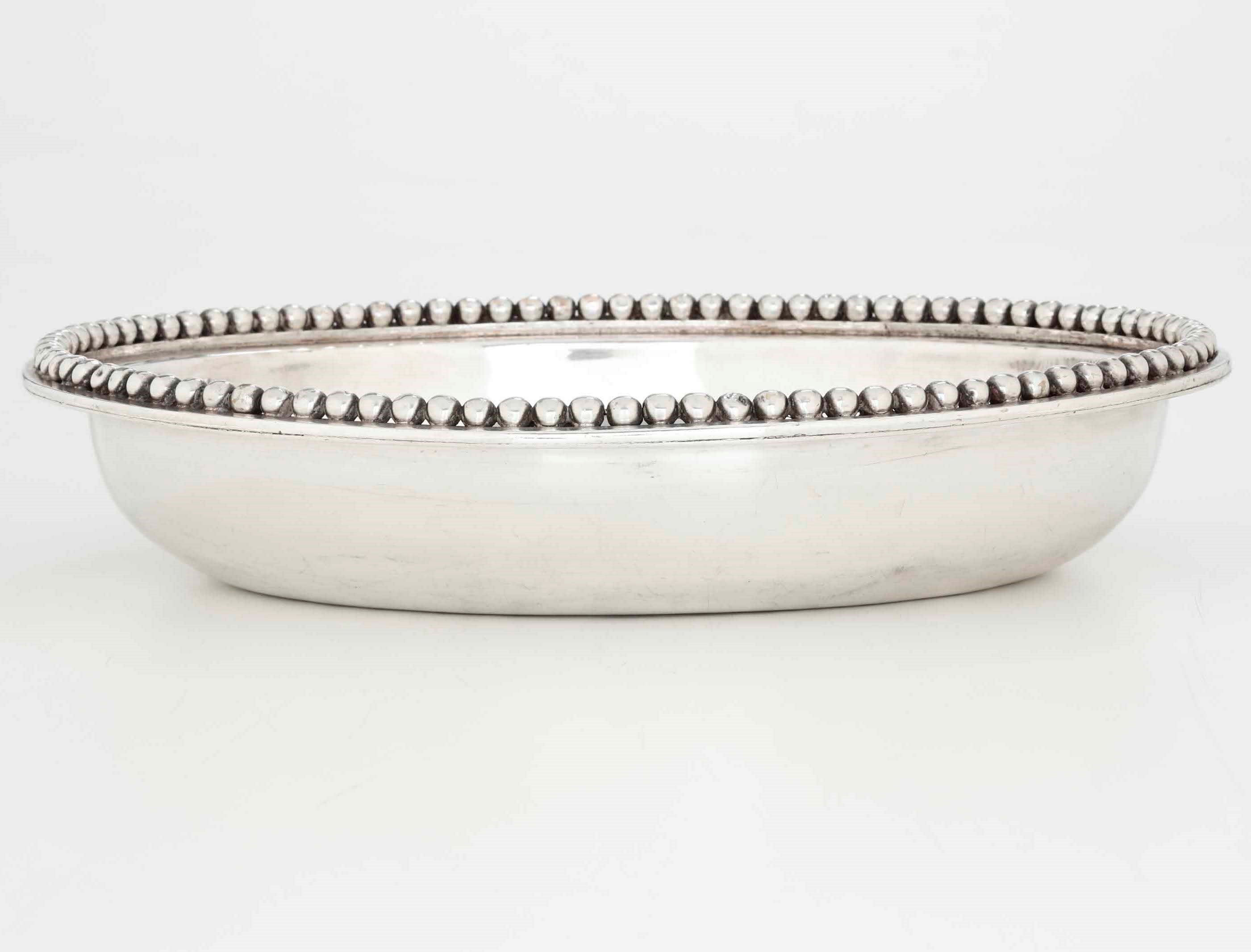 Ciotola in metallo argentato ovale con bordo perlinato. XIX secolo