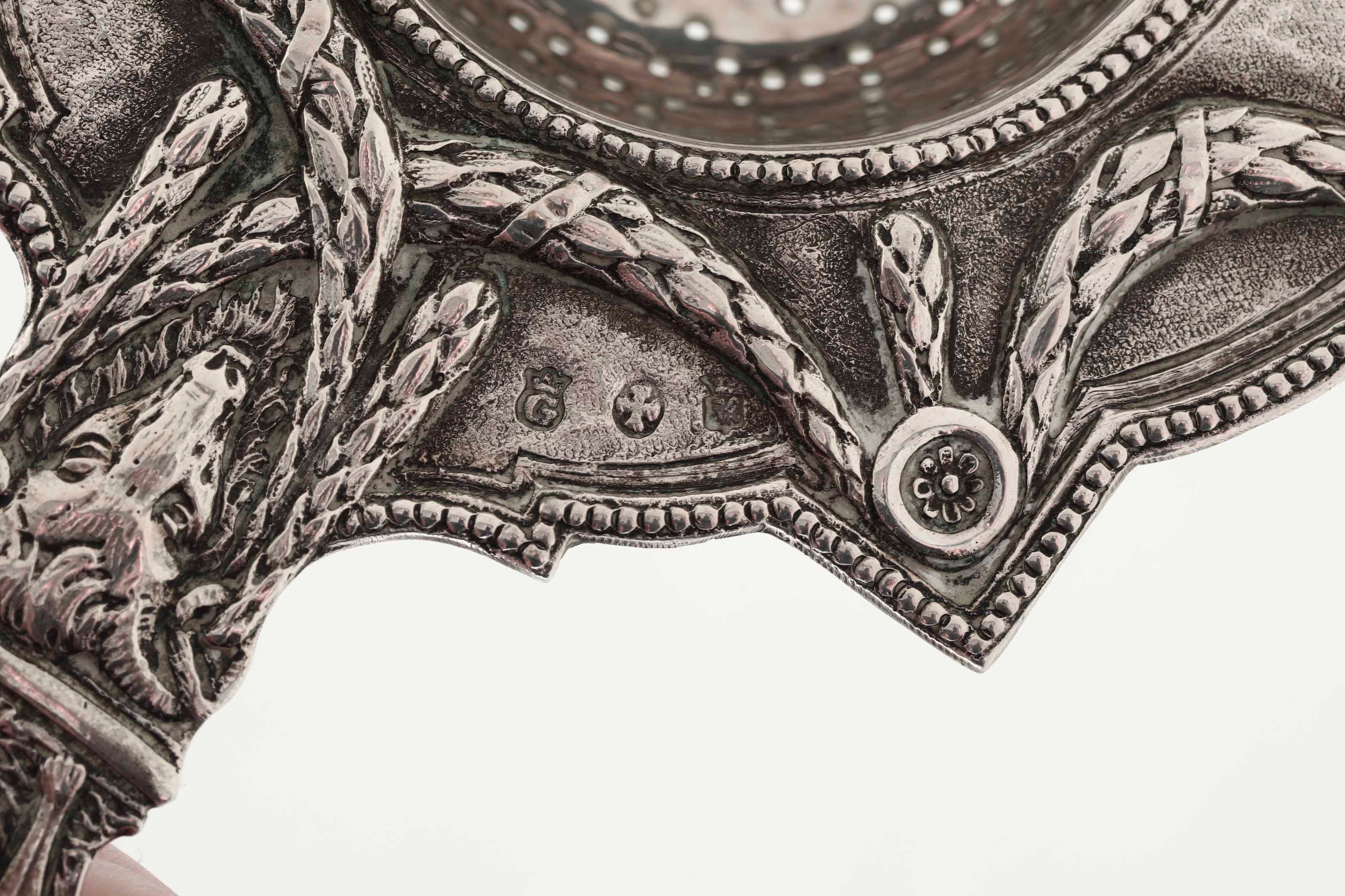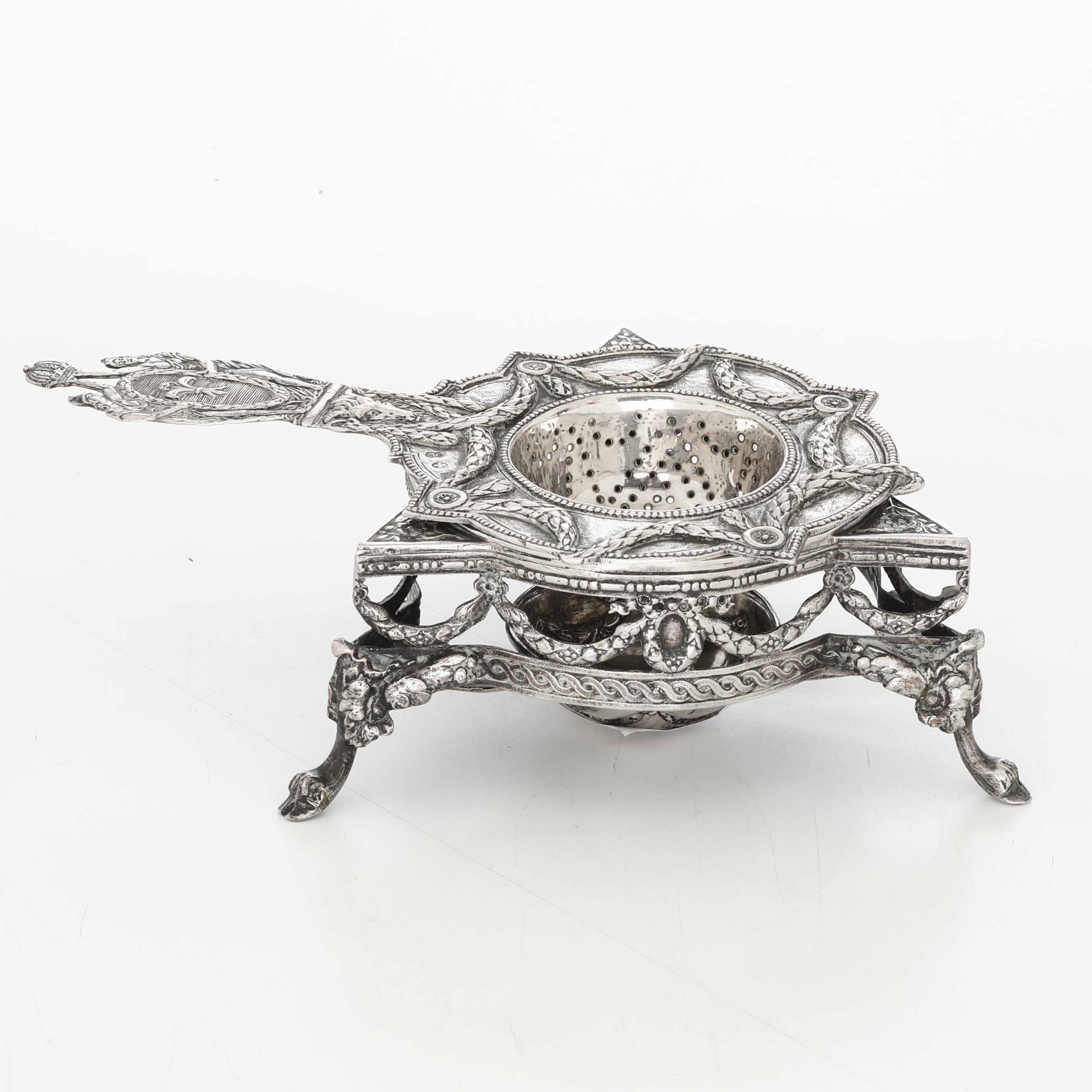 Colino da tè in argento fuso e cesellato. Argenteria europea del XIX-XX secolo