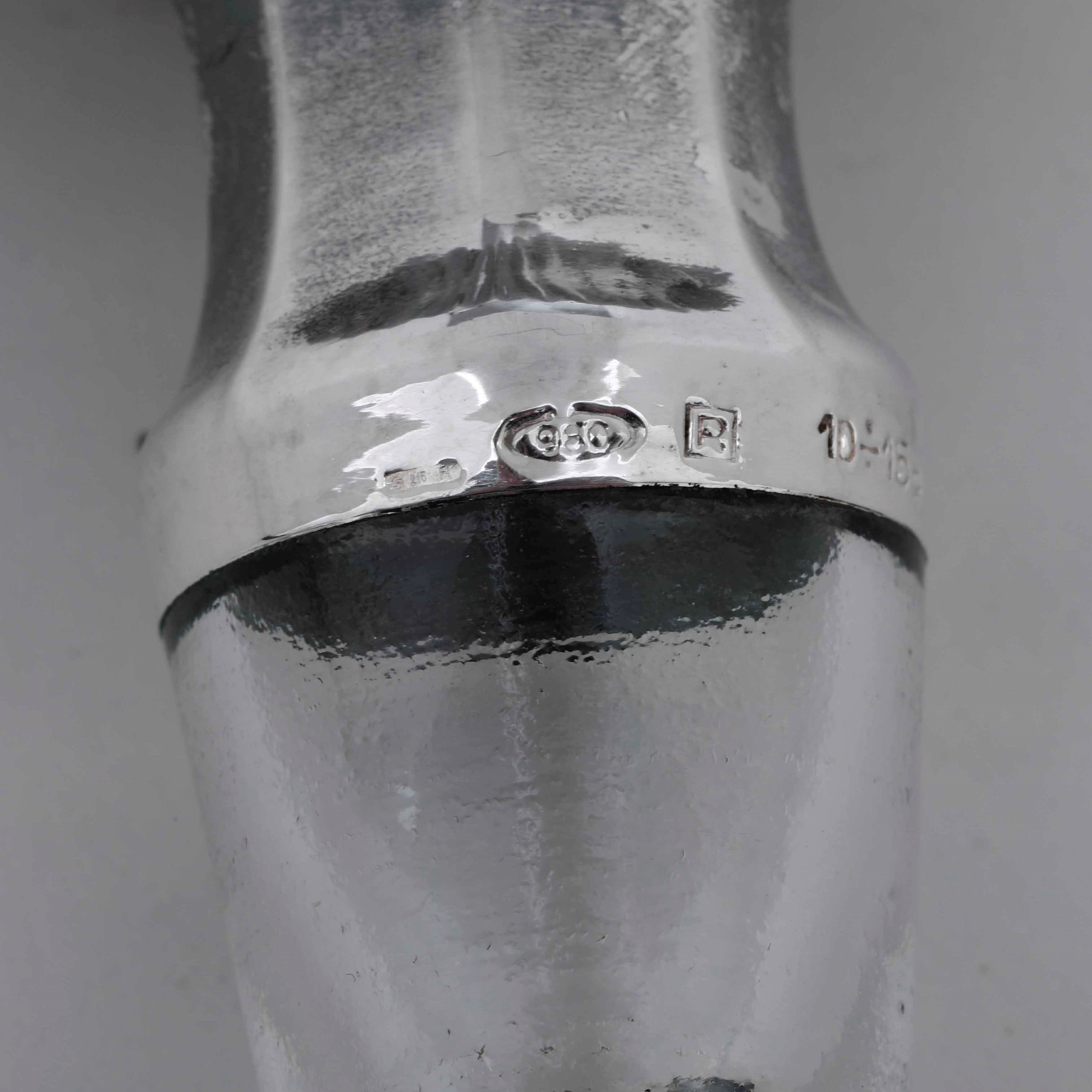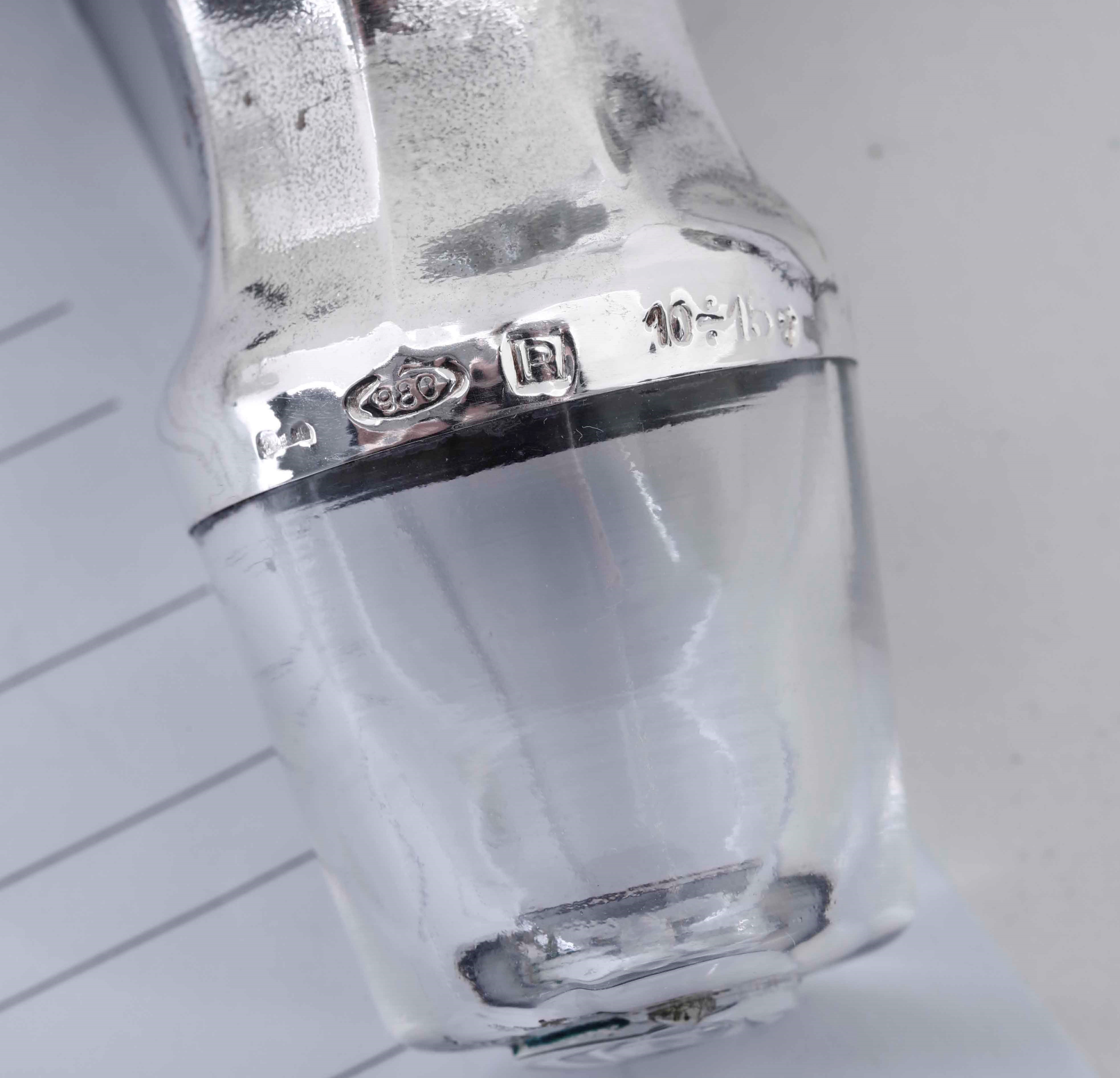Coppia di bottiglie in cristallo con tappi in argento. Italia XX secolo