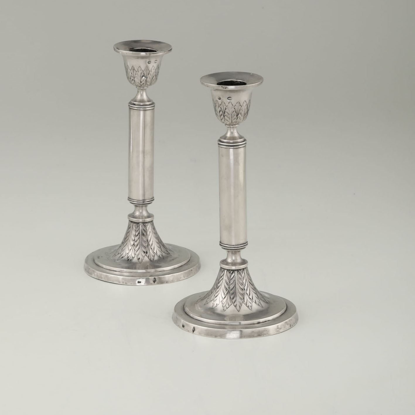 Coppia di candelieri in argento fuso, sbalzato e cesellato Regno sabaudo, primo [..]