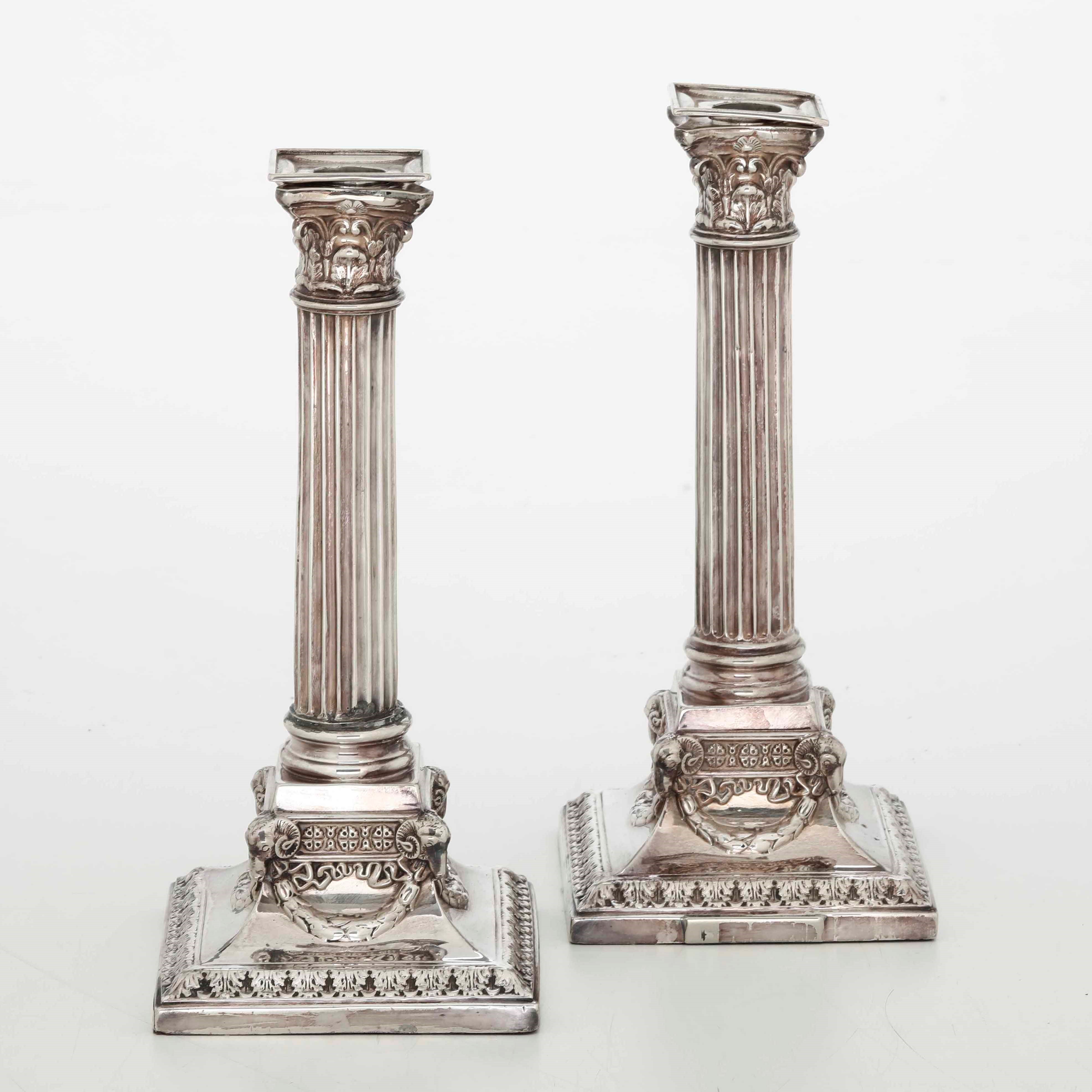 Coppia di candelieri in argento fuso, sbalzato e cesellato. Inghilterra XX secolo, [..]