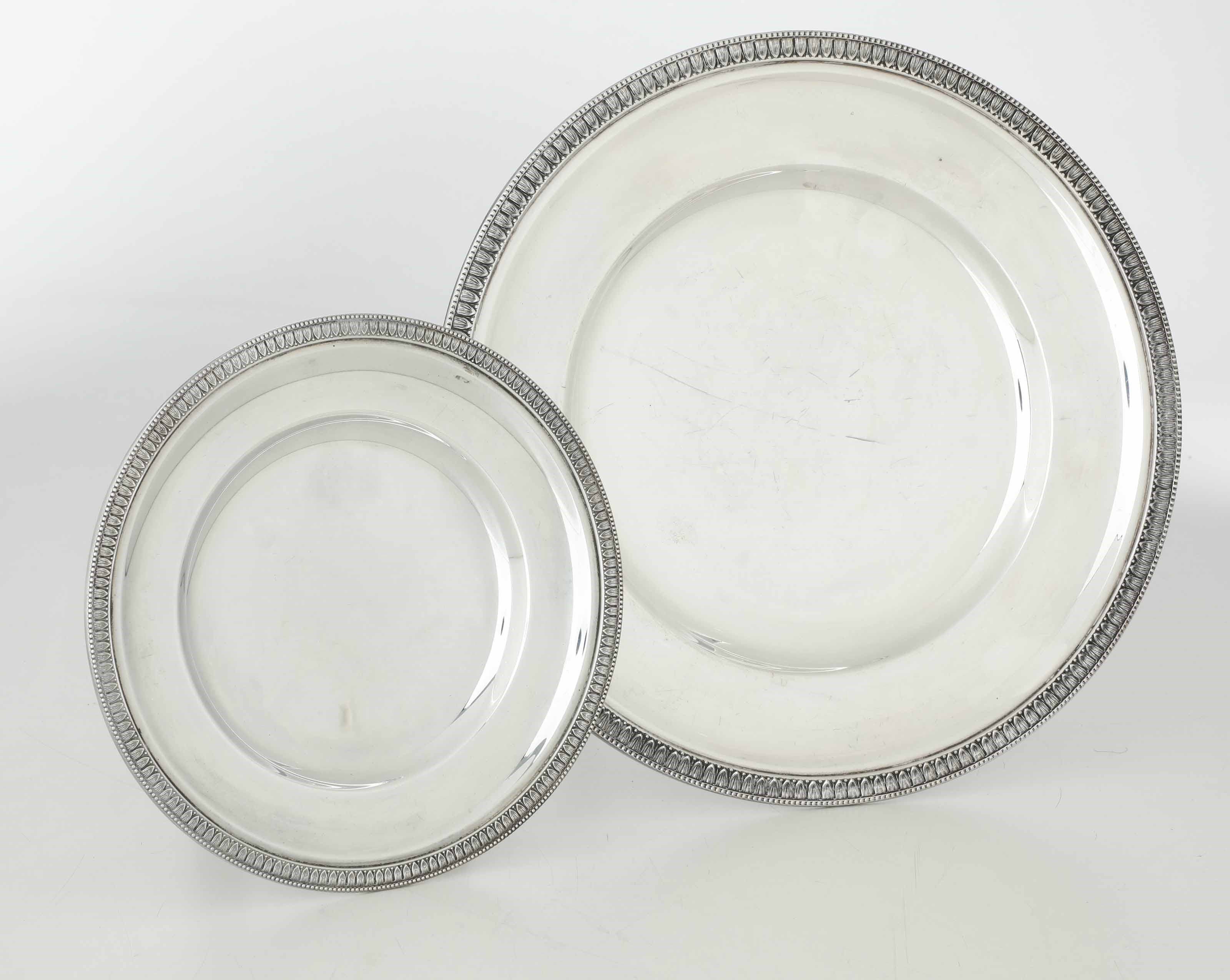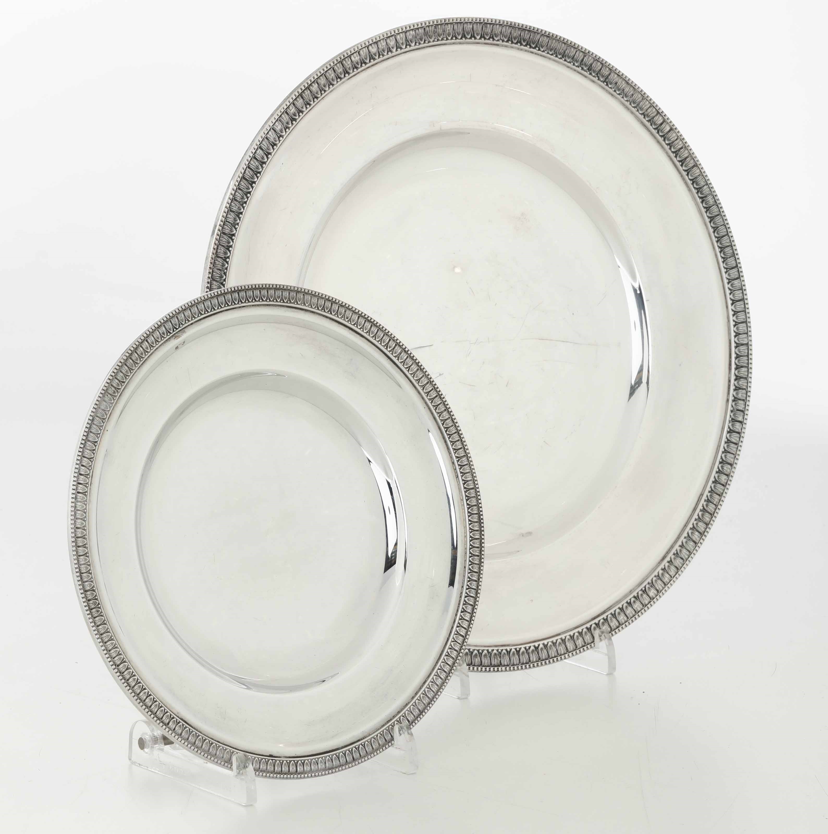 Coppia di piatti diversi in argento fuso e cesellato. Diverse manifatture italiane [..]