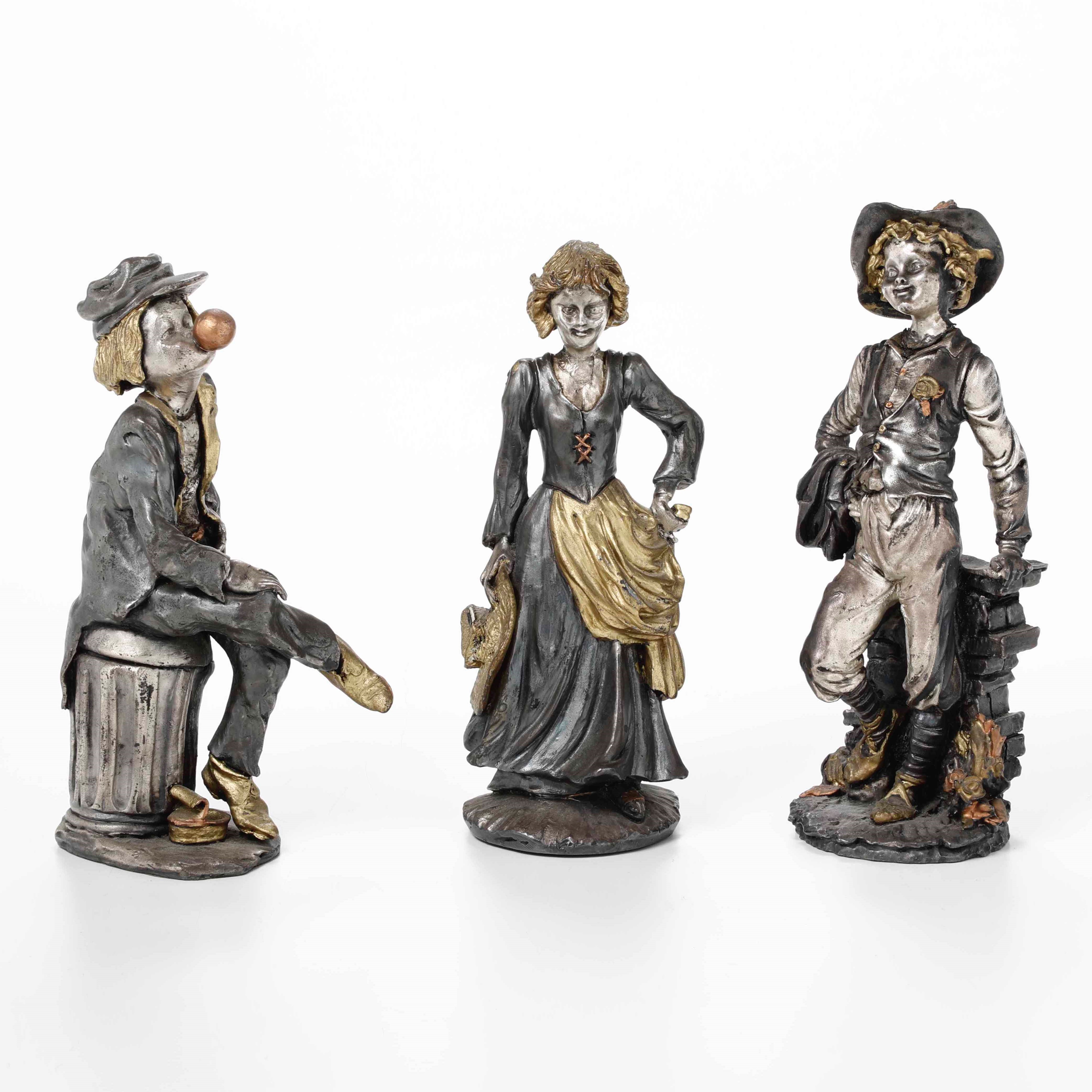 Coppia di sculturine raffiguranti contadinelli e scultura raffigurante clown in [..]
