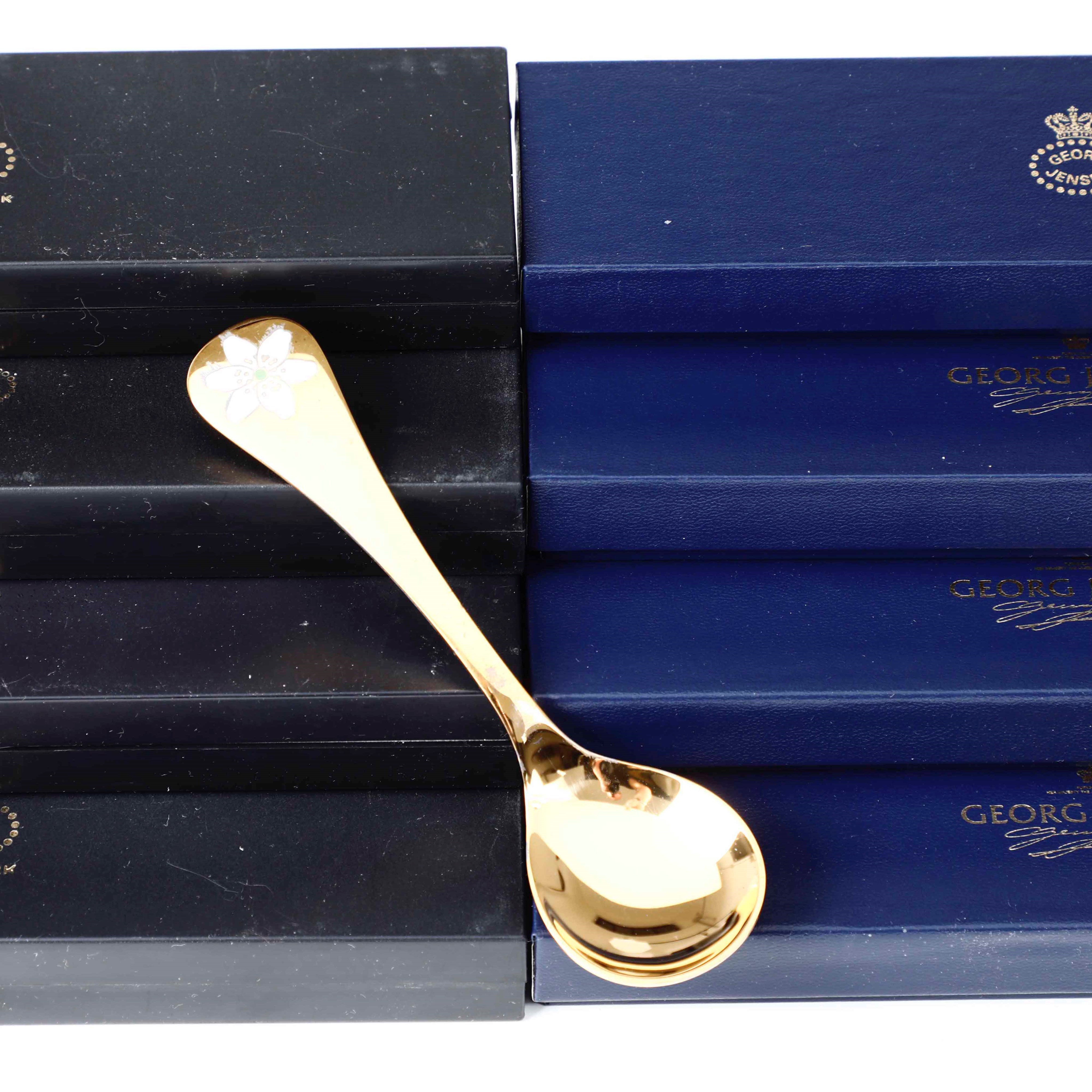 Dodici cucchiai con decorazioni floreali. Argento sterling dorato e smaltato. Annelise [..]