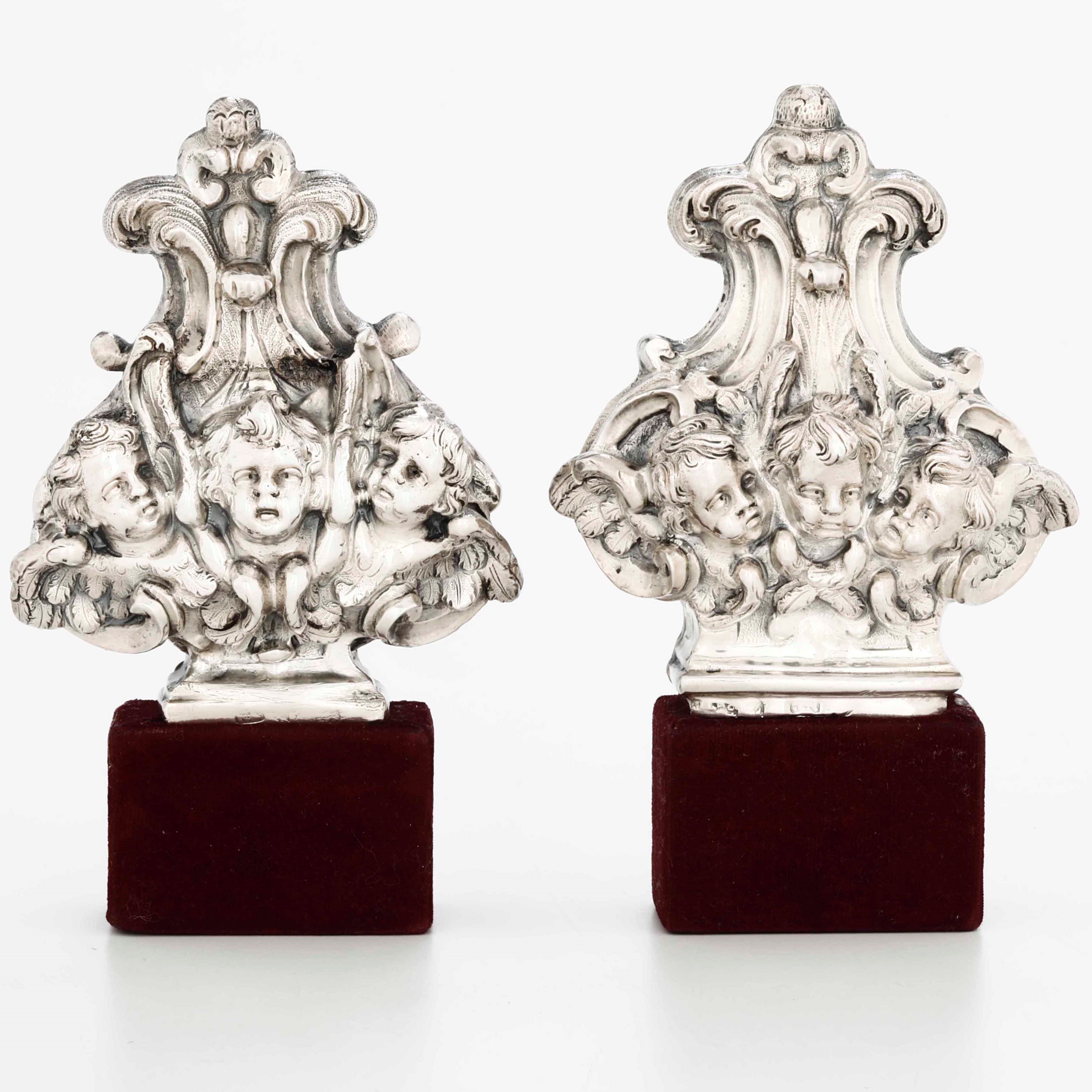 Due finali di croce in argento sbalzato con cherubini. Argenteria barocca italiana [..]