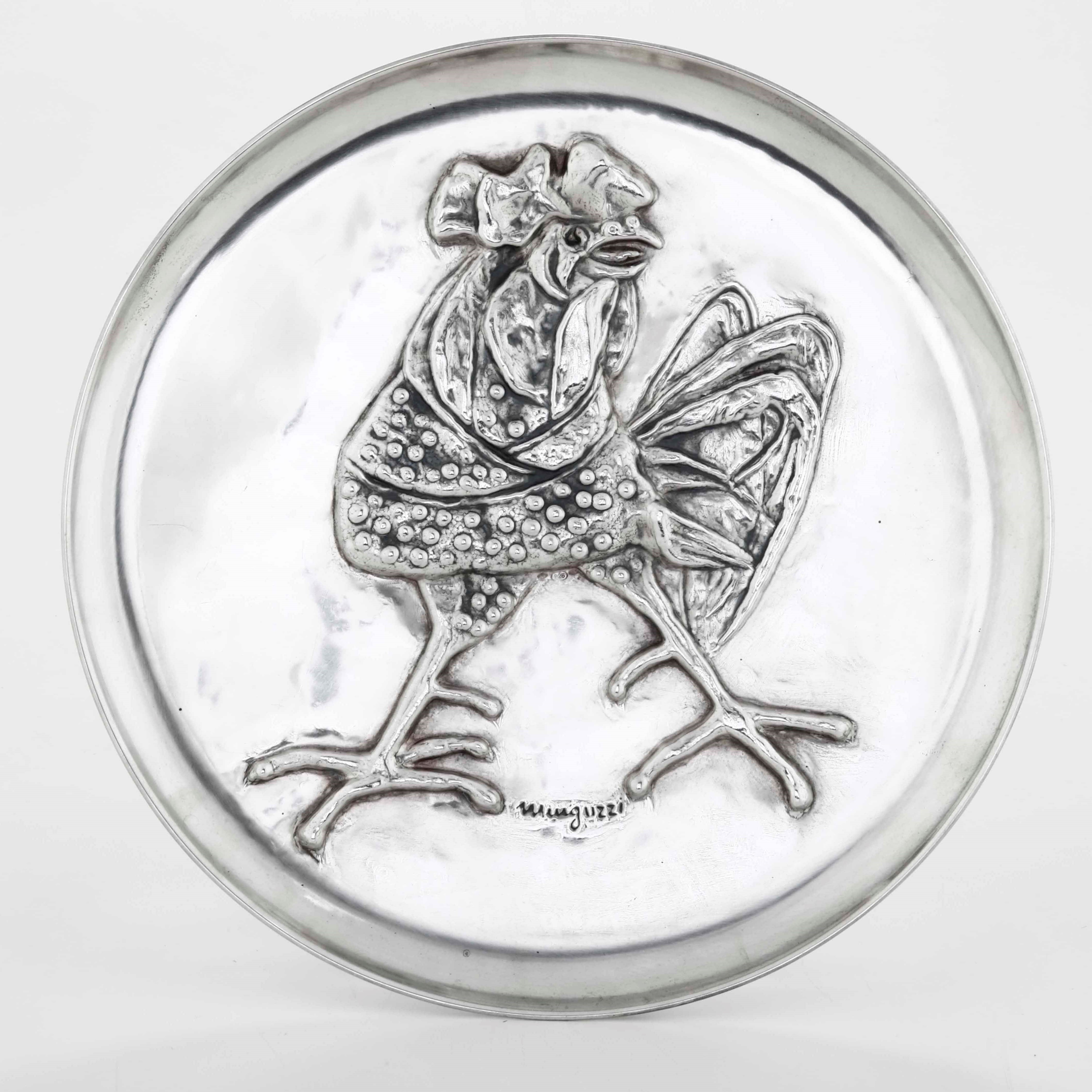 Gallo in argento 925 fuso. Firmato Minguzzi. Argenteria artistica italiana del XX [..]