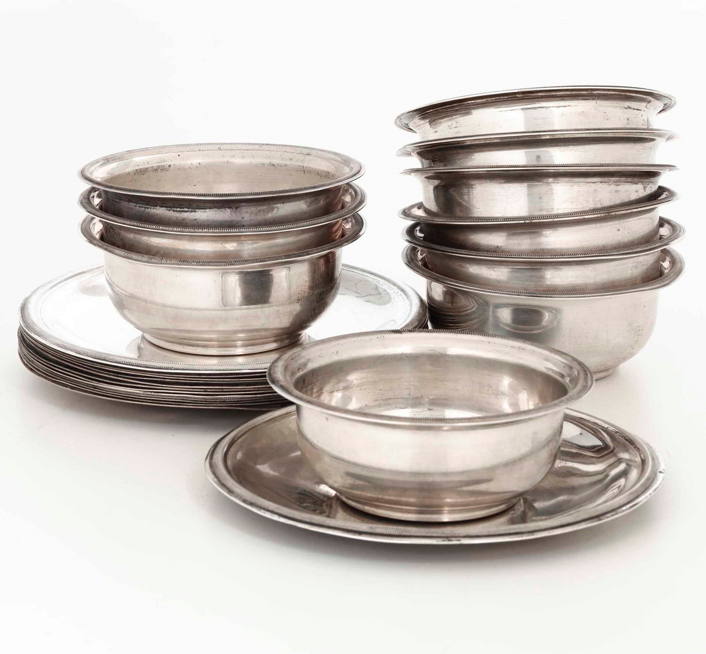 Gruppo di dieci lavadita con relativi sottopiatti in argento. Manifattura europea, [..]