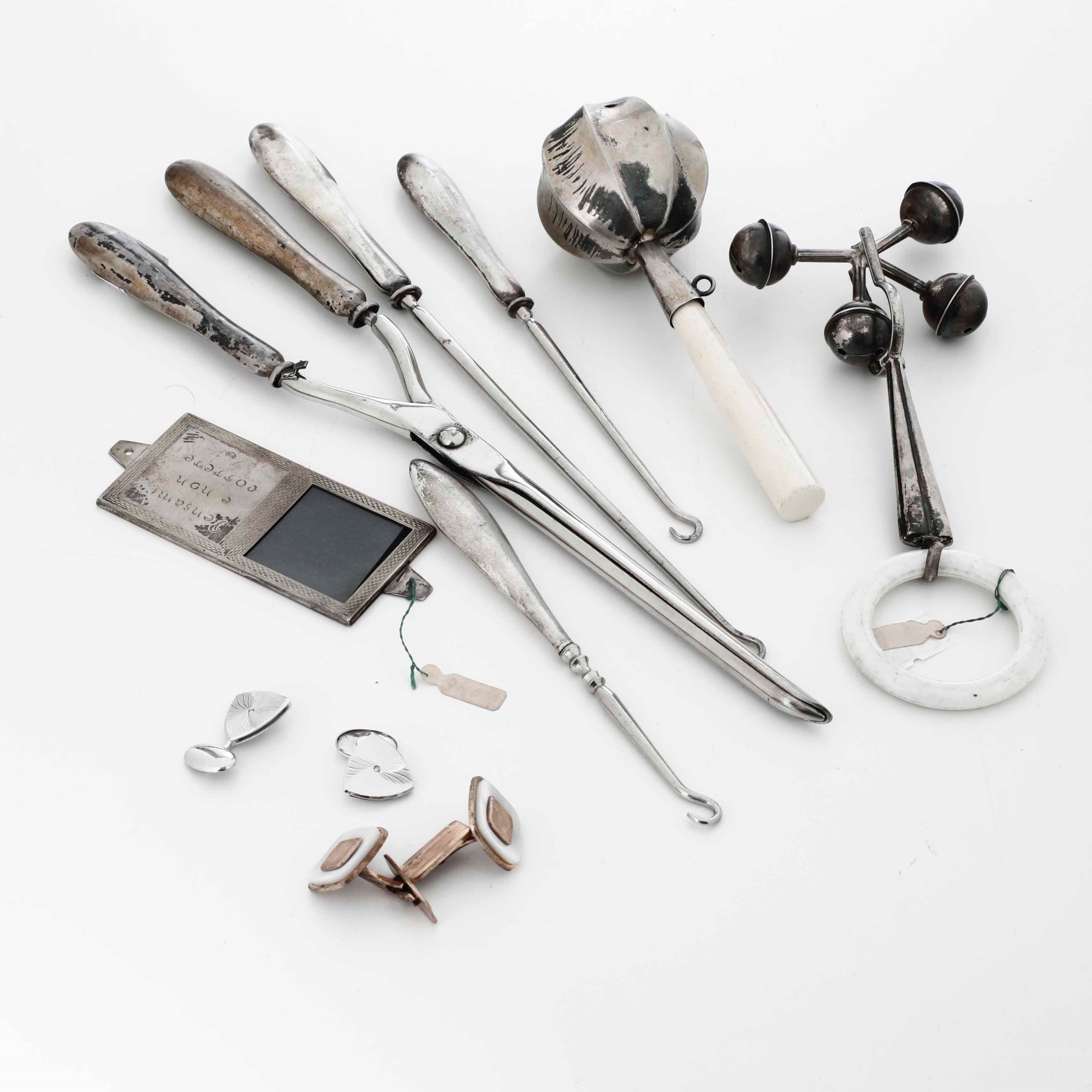 Insieme di oggetti in argento e metallo argentato composto da portafoto, due coppie [..]