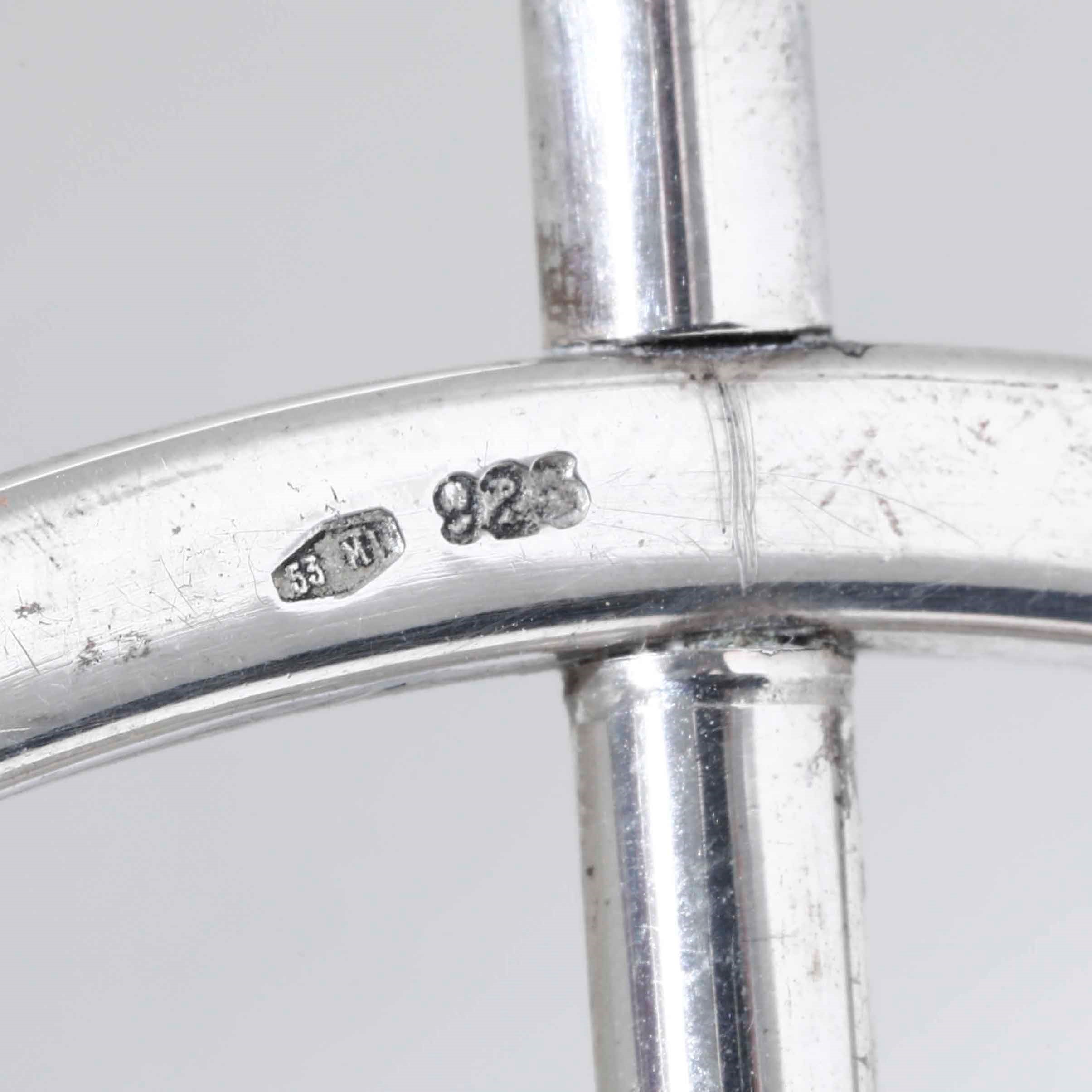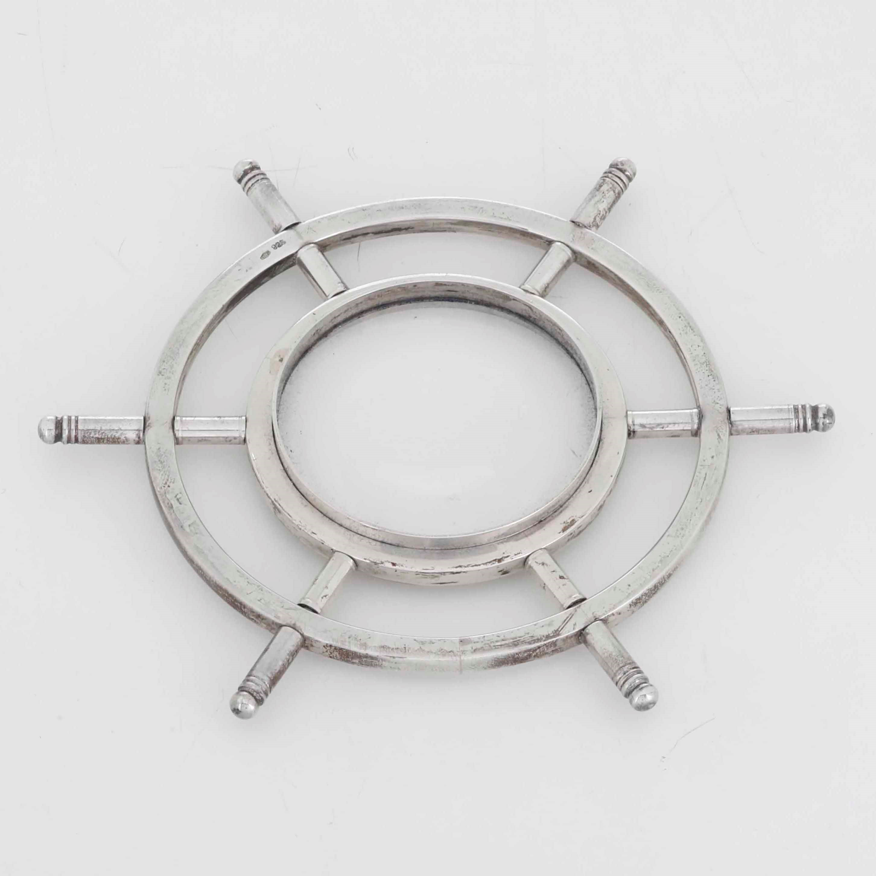 Lente da tavolo in argento a forma di timone. Argenteria artistica milanese del [..]