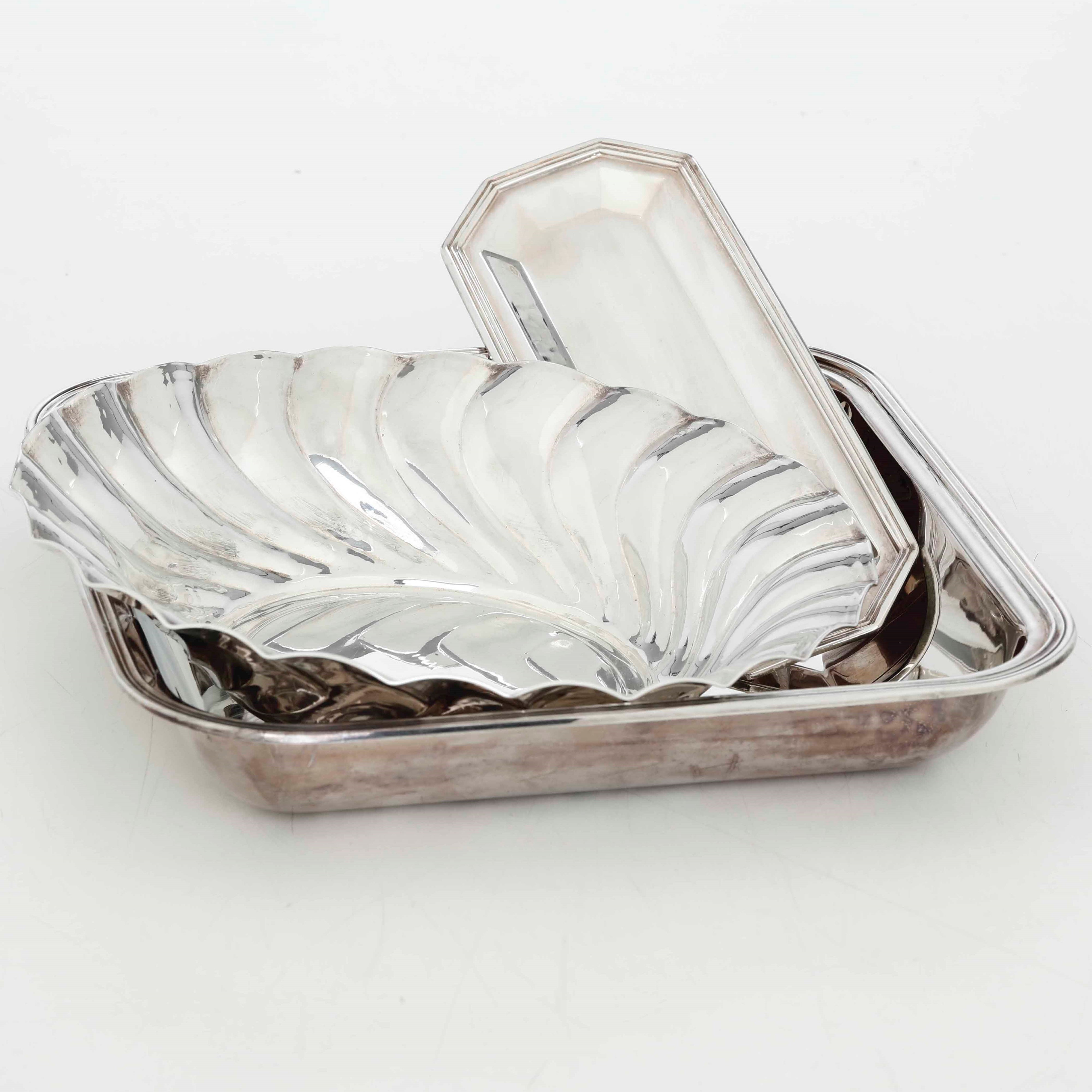 Lotto di due ciotole e un piattino rettangolare in argento. Argenteria italiana [..]