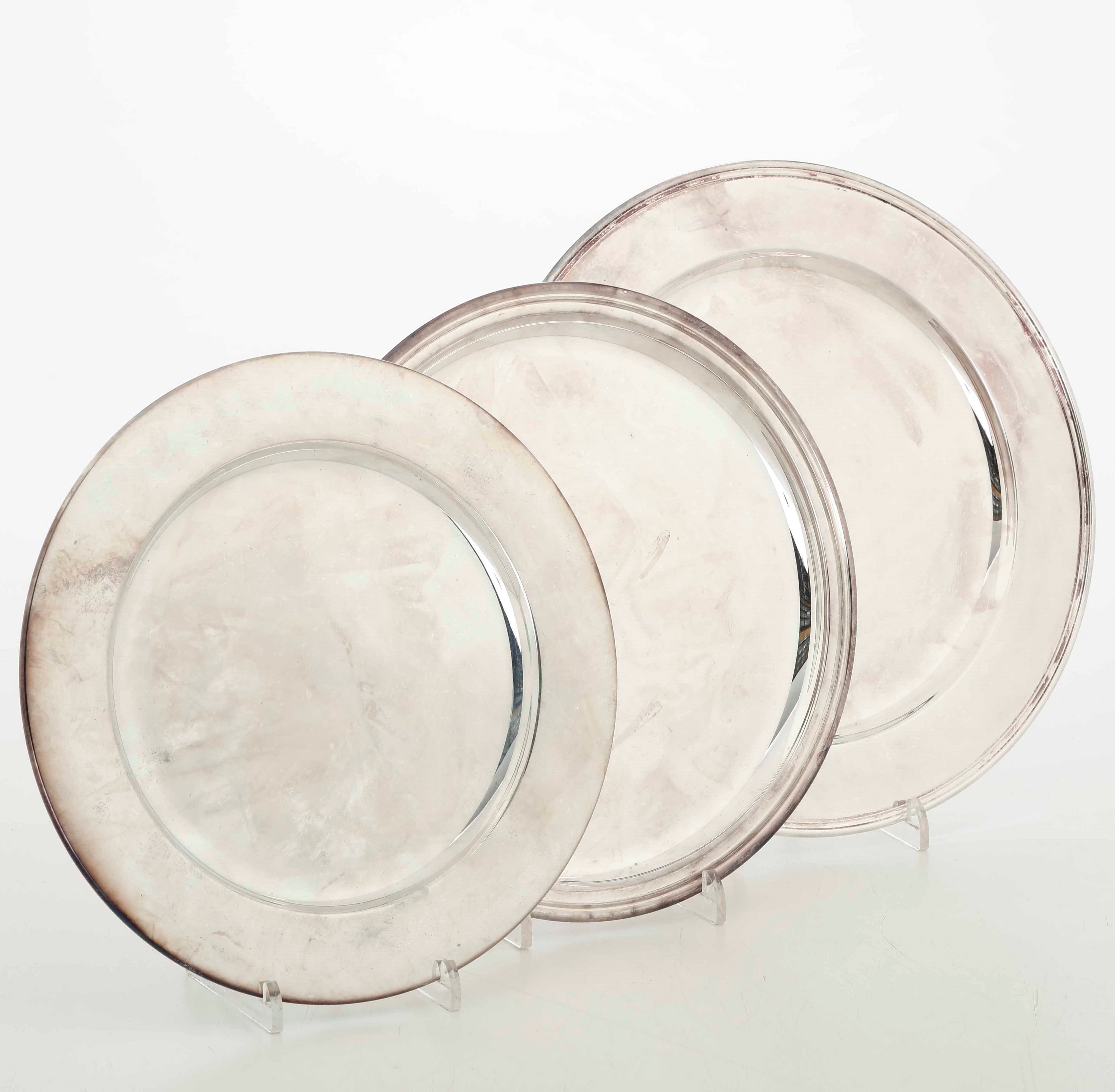Lotto di tre piatti in argento. Varie manifatture italiane del XX secolo