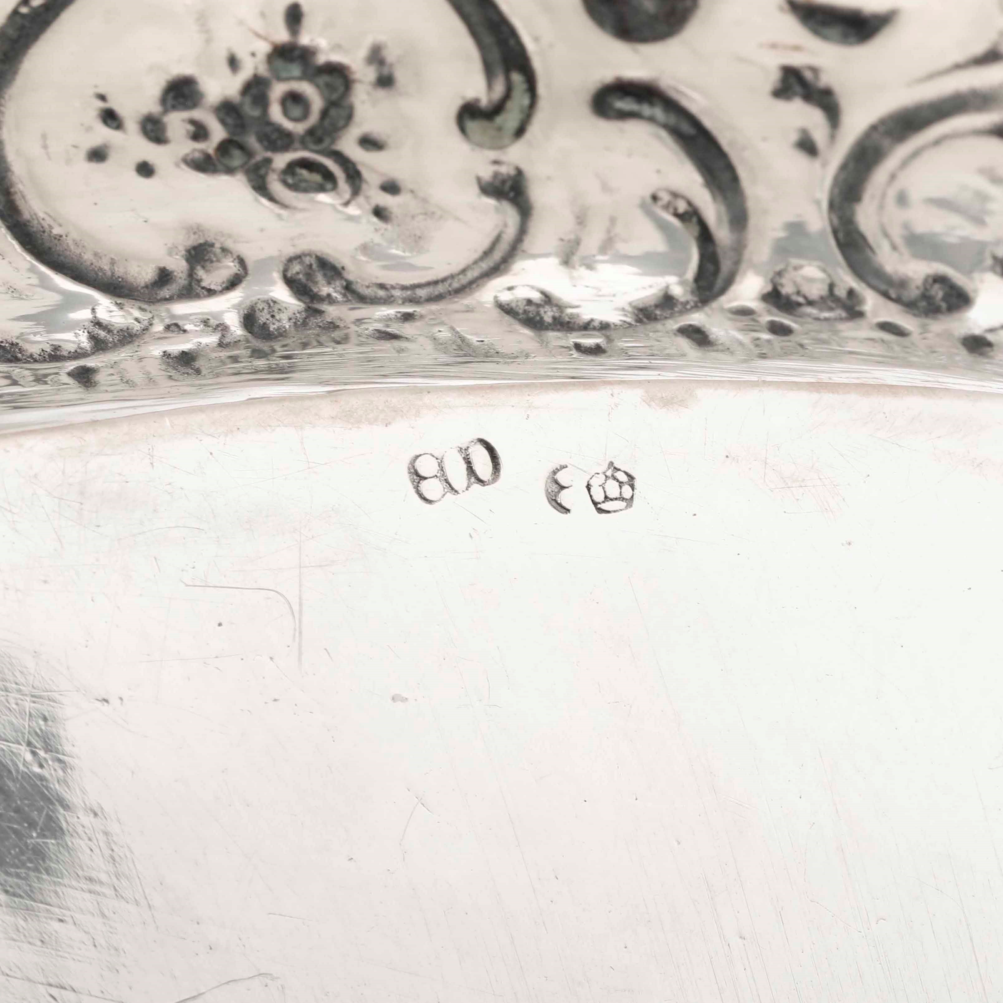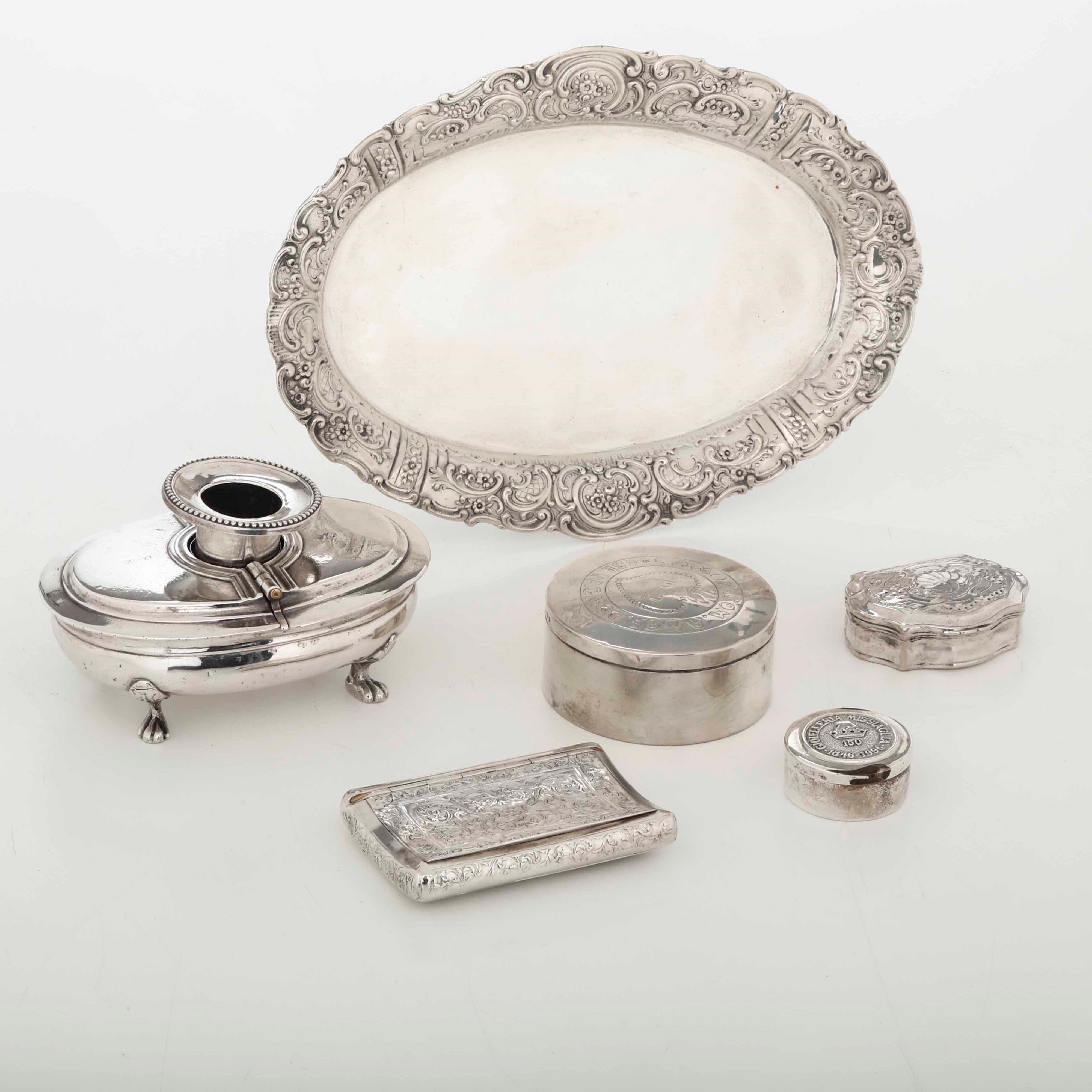 Lotto in argento composto da quattro scatole con coperchio, un vassoio, vaschetta [..]