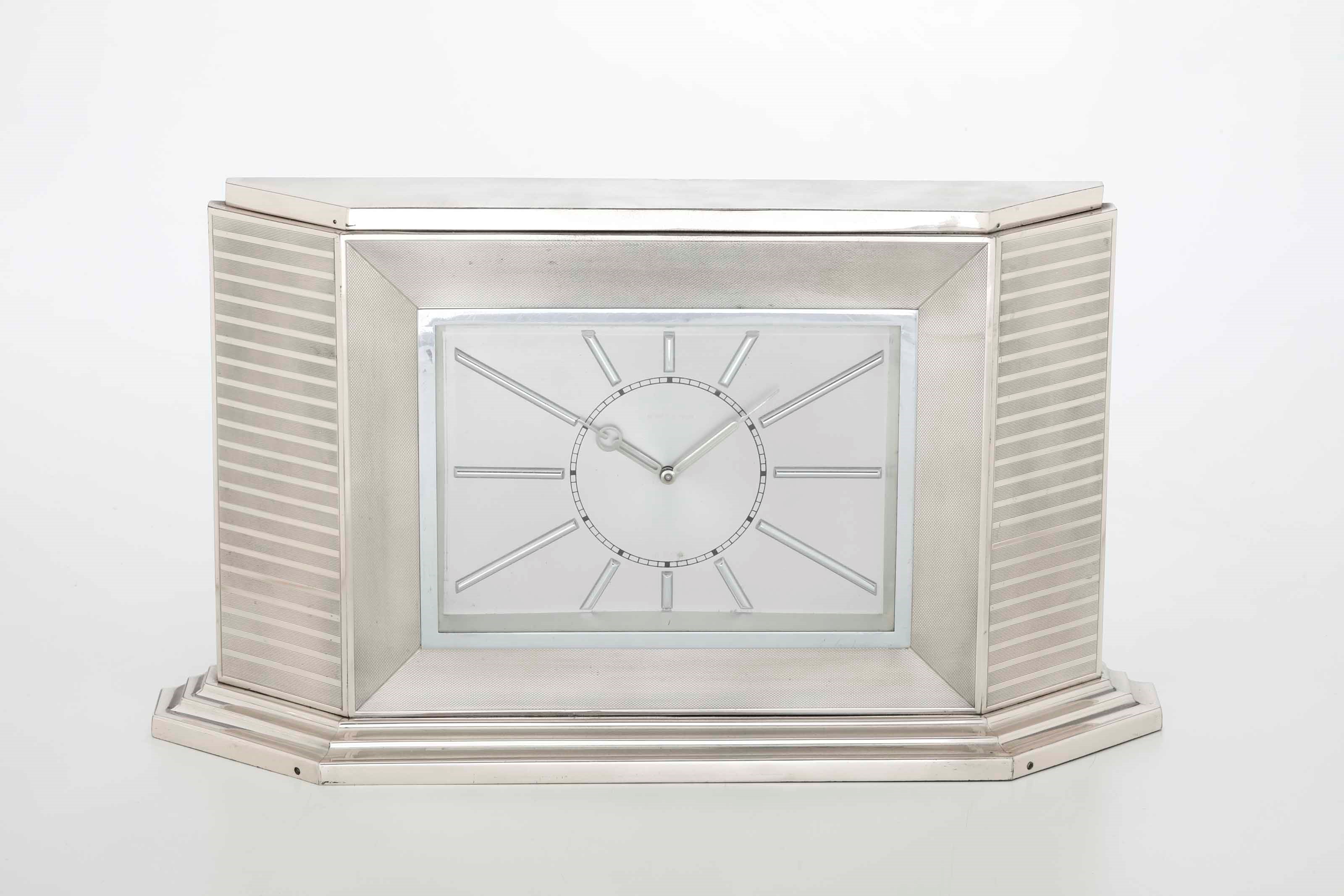 Orologio da tavolo rivestito in lamina d'argento. Bollo con fascio littorio in uso [..]