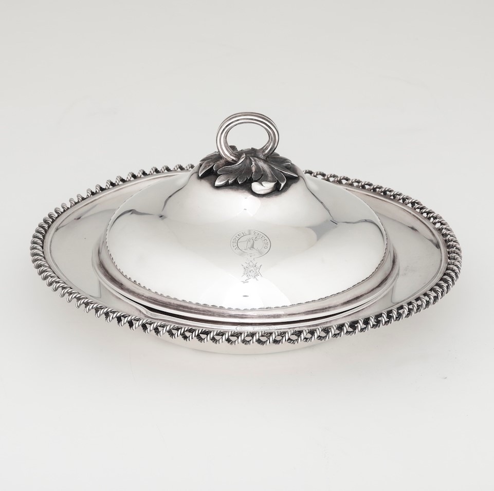 Portavivande con coperchio in argento fuso, sbalzato e cesellato. Londra 1856. Argentiere [..]