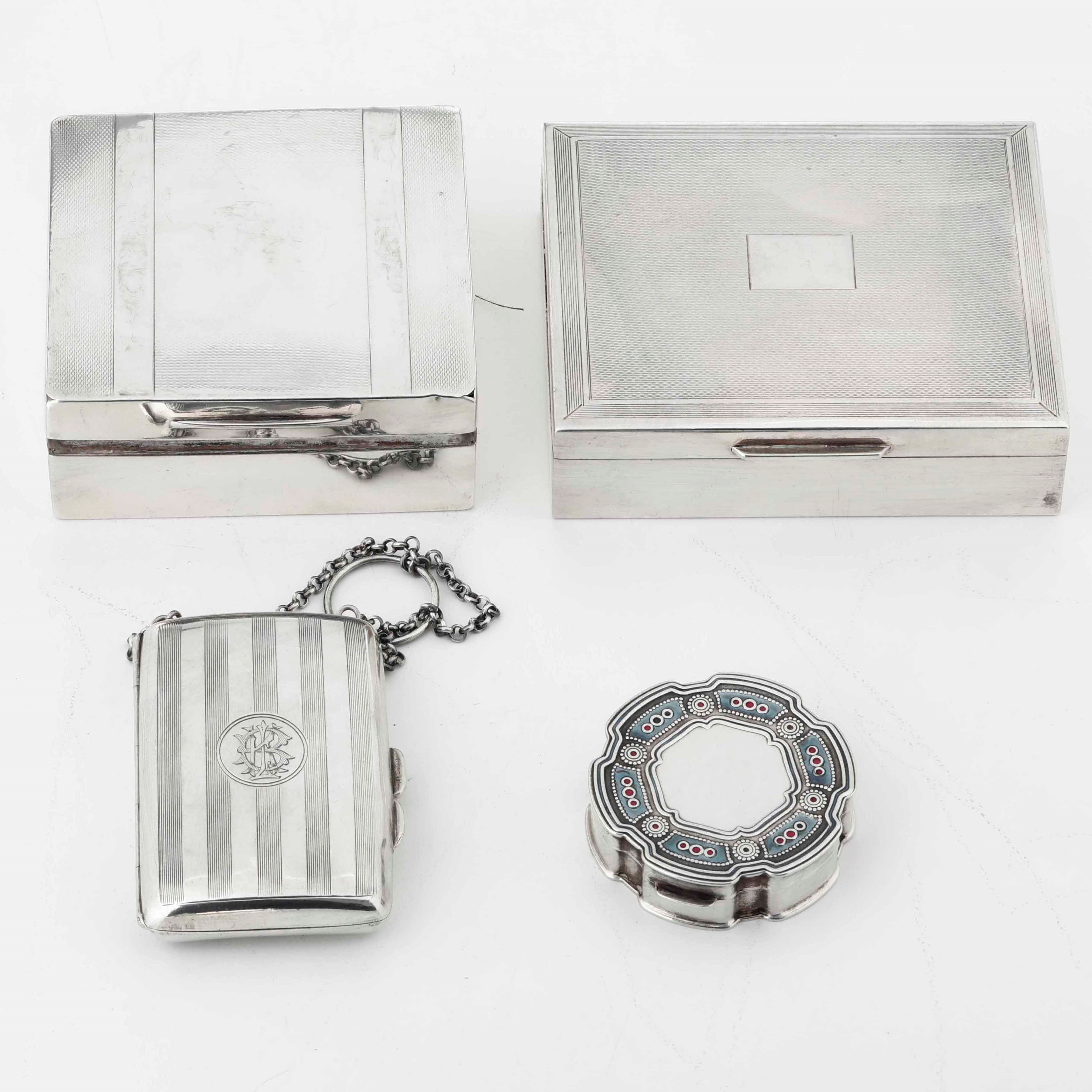 Quattro scatole in argento. Manifatture inglesi ed italiana del XX secolo