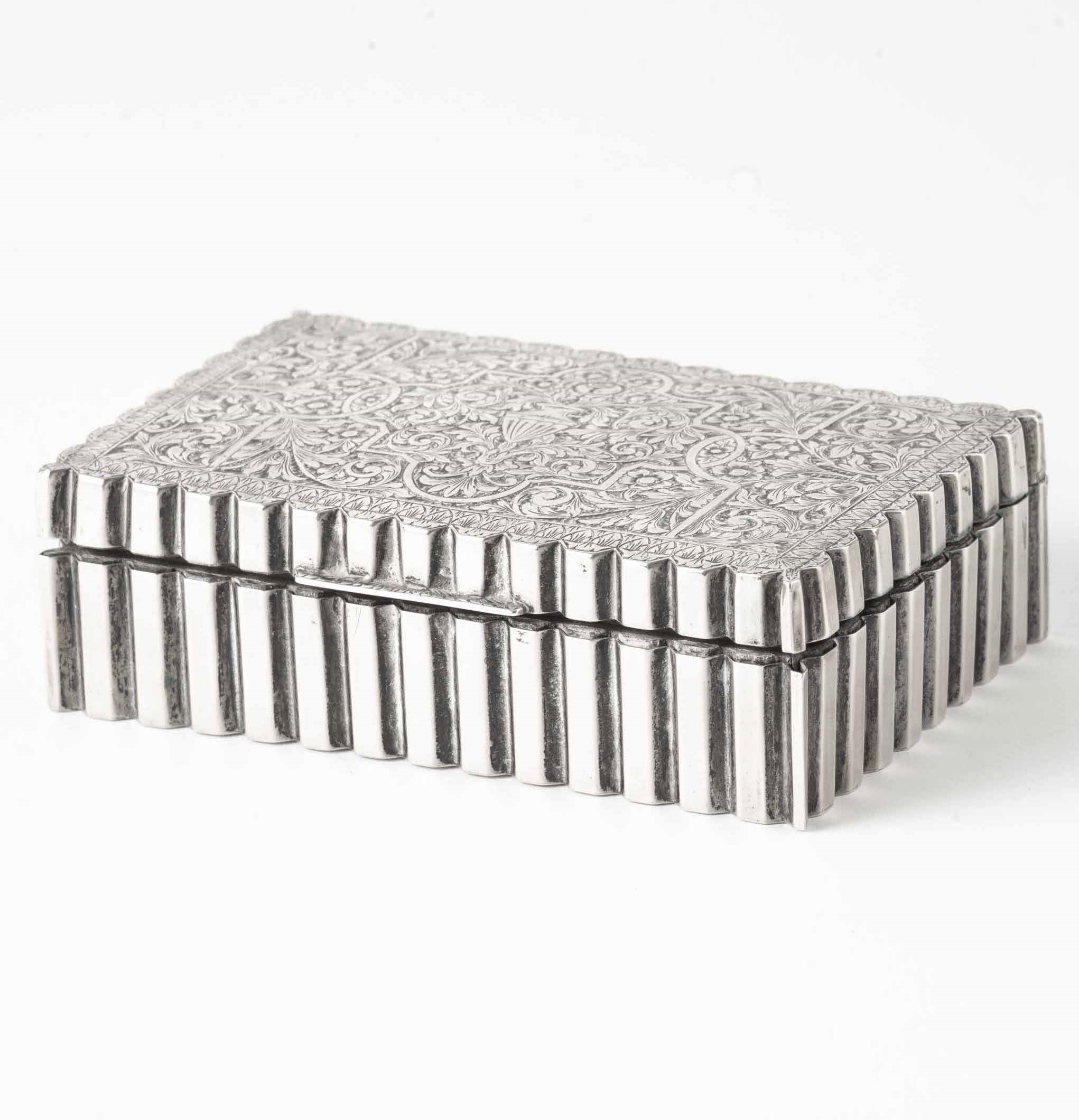 Scatola rivestita in argento inciso. Argenteria italiana del XX secolo